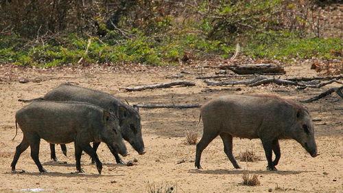 更有趣的是,跑山猪们吃瓜时还会互相竞争。有时候,为了争夺一块美味的西瓜,它们甚至会扭打在一起。那场面,真是让人忍俊不禁。